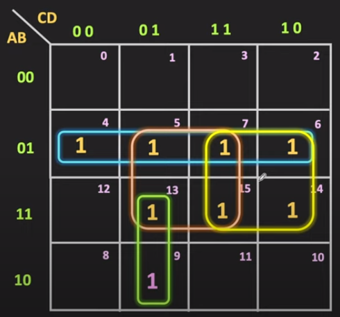 - Prime Implicant: An implicant is a prime implicant which forms the largest group possible to cover 1s